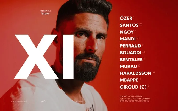 里尔首发:1-奥兹尔、22-桑托斯、3-恩戈伊、23-曼迪、15-佩劳德、32-布阿迪、6-本塔莱布、17-穆考、10-哈拉兹森、8-E-姆巴佩、9-吉鲁